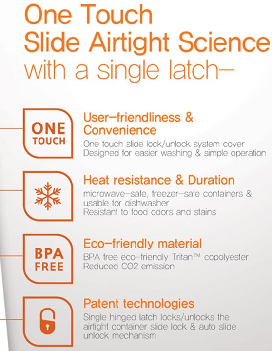 الكورية قفل لمسة واحدة، الكورية محكم الحاويات، وأدوات المطبخ